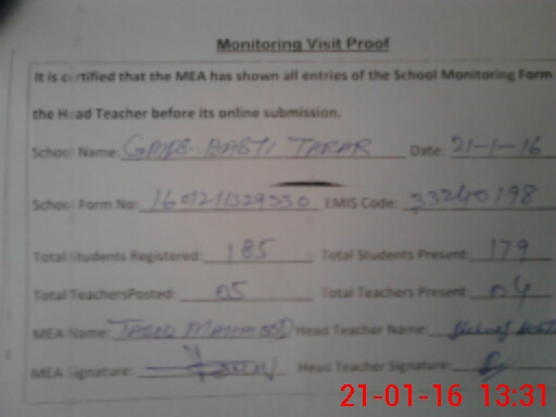 | EMIS Code: 33240198 | Name of School: GMPS BASTI TARAR | |||
