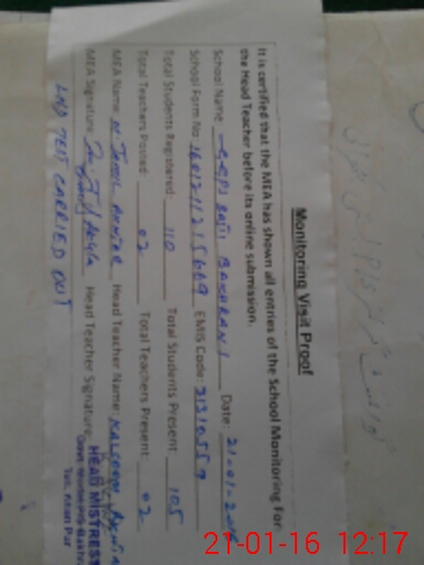 | Certified that this School was Inspected by the Undersigned MEA/DMO Today and the Information Stated Above is as Per Record. | |||||