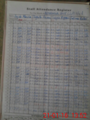 | CNIC | Full Name | Designation | R/C | Absence During Last Calender Month |