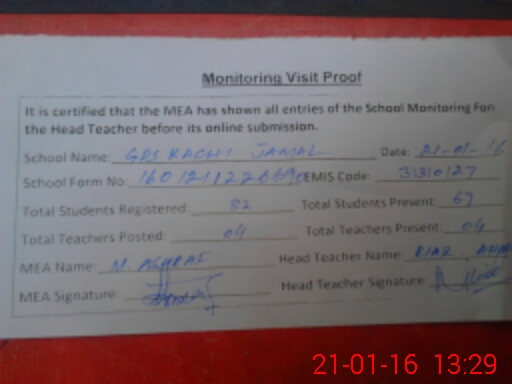 | EMIS Code: 31310127 | Name of School: GPS KACHI JAMAL KALIM ABAD (After Noon) | |||