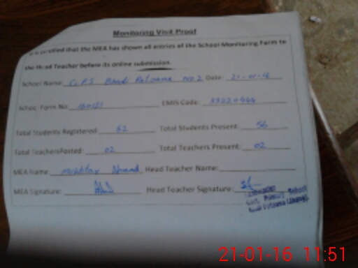 | Attendance Register | Head Teacher | MEA with School | Visit Proof |