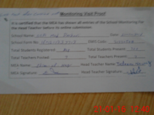 | EMIS Code: 31330508 | Name of School: GGPS MUD DARBARI | |||