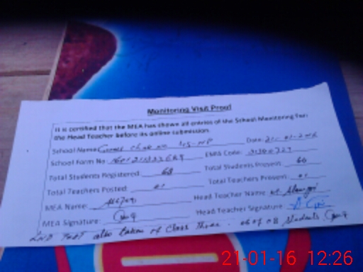 | Attendance Register | Head Teacher | MEA with School | Visit Proof |