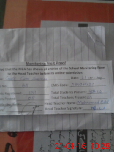 | Attendance Register | Head Teacher | MEA with School | Visit Proof |