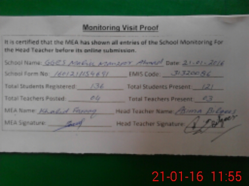 | EMIS Code: 31320086 | Name of School: GGES MALIK MANZOOR AHMAD | |||