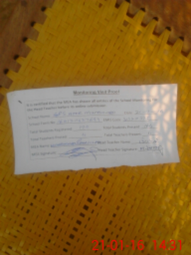 | Attendance Register | Head Teacher | MEA with School | Visit Proof |