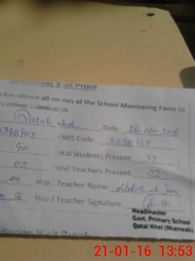 | EMIS Code: 38310427 | Name of School: GPS QATAL KHEL | |||
