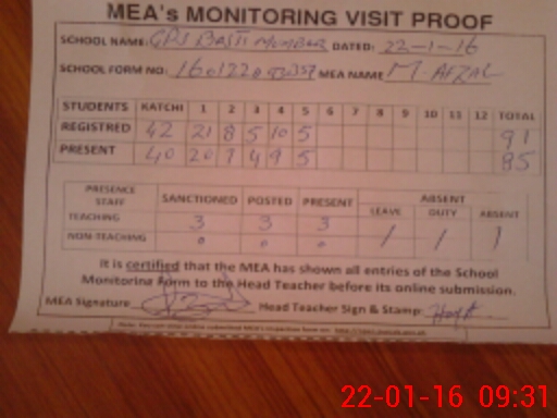 | Certified that this School was Inspected by the Undersigned MEA/DMO Today and the Information Stated Above is as Per Record. | |||||