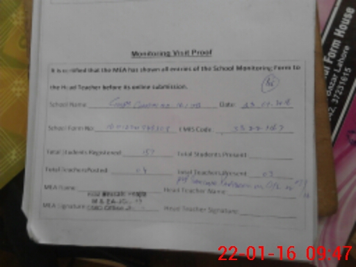 | Remarks (Use Separate Page if Required): SHNS Mr Farrakh Habib of uc No 59 did not visit this school after August 2014 to till date 22 01 2016 | |||||