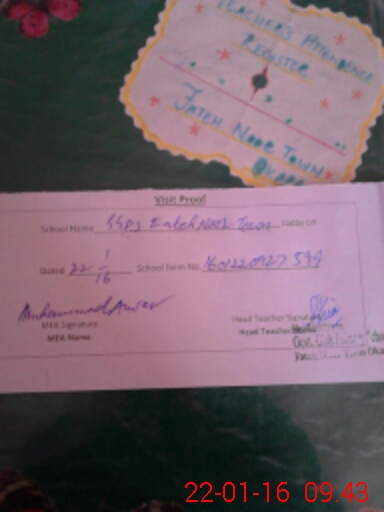 | Attendance Register | Head Teacher | MEA with School | Visit Proof |