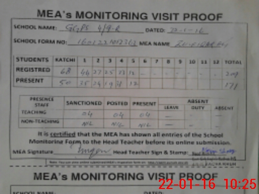 | Attendance Register | Head Teacher | MEA with School | Visit Proof |