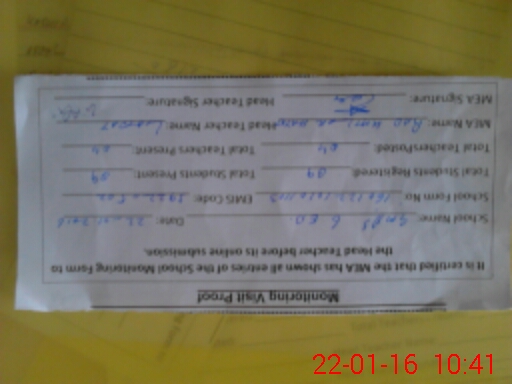 | Attendance Register | Head Teacher | MEA with School | Visit Proof |