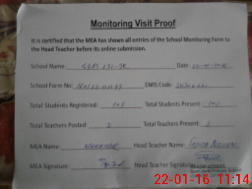 | EMIS Code: 31130062 | Name of School: GGPS CHAK 231/9-R | |||