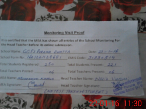 | EMIS Code: 31330514 | Name of School: GGPS PURANA BHATTA | |||