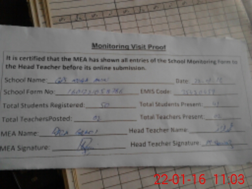 | Certified that this School was Inspected by the Undersigned MEA/DMO Today and the Information Stated Above is as Per Record. | |||||