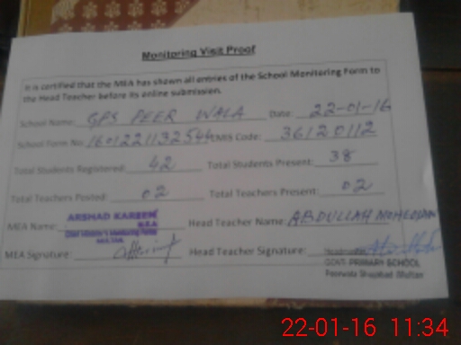 | EMIS Code: 36120112 | Name of School: GPS PEER WALA P/O THATH GHALWAN | |||