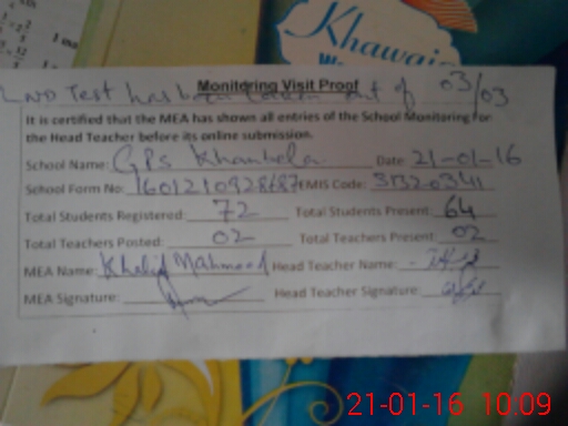 | EMIS Code: 31320341 | Name of School: GPS KHAN BELLA | |||