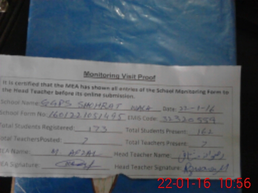 | EMIS Code: 32320559 | Name of School: GGPS SHOHRAT WALA | |||