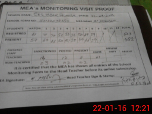 | Attendance Register | Head Teacher | MEA with School | Visit Proof |