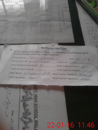 | Monitoring Date: 22-01-2016 | Start Time: 22-01-2016 11:11 AM | End Time: 22-01-2016 11:48 AM | Name of MEA: Mu**** Iz**** UlHa**** | |