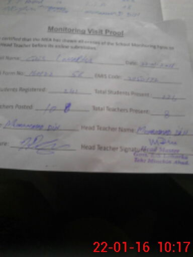 | Certified that this School was Inspected by the Undersigned MEA/DMO Today and the Information Stated Above is as Per Record. | |||||