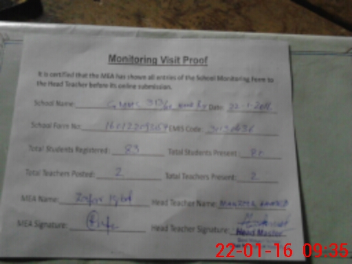 | Attendance Register | Head Teacher | MEA with School | Visit Proof |