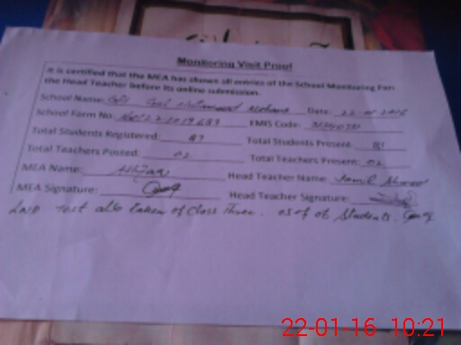 | EMIS Code: 31340731 | Name of School: GPS GUL MUHAMMAD MOHANA | |||