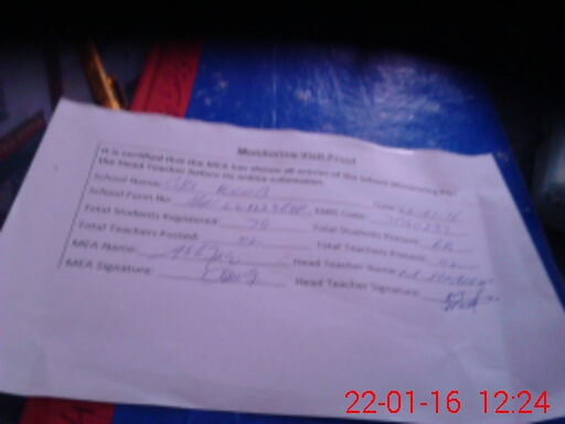 | Attendance Register | Head Teacher | MEA with School | Visit Proof |