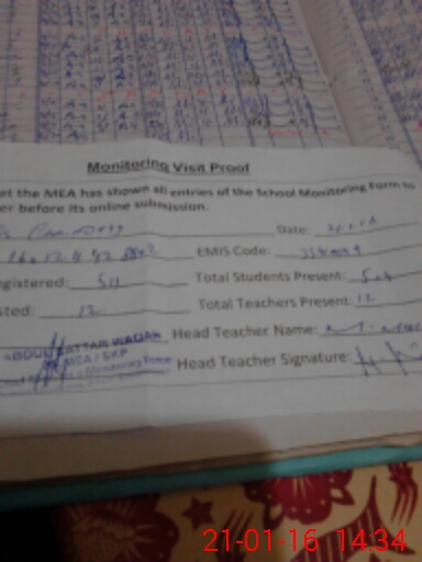 | Attendance Register | Head Teacher | MEA with School | Visit Proof |