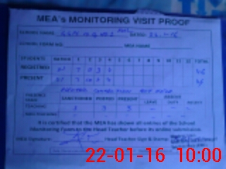 | Attendance Register | Head Teacher | MEA with School | Visit Proof |