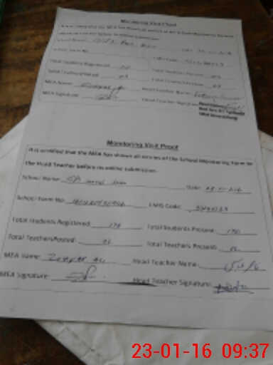| Attendance Register | Head Teacher | MEA with School | Visit Proof |