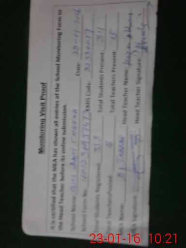 | Monitoring Date: 23-01-2016 | Start Time: 23-01-2016 09:37 AM | End Time: 23-01-2016 10:21 AM | Name of MEA: Ab**** Ja**** | |