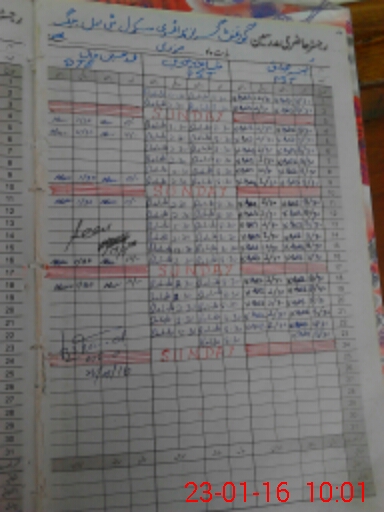 | CNIC | Full Name | Designation | R/C | Absence During Last Calender Month |