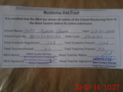 | EMIS Code: 39210184 | Name of School: GPS GADDAI SHAH PO PAKPATTAN | |||