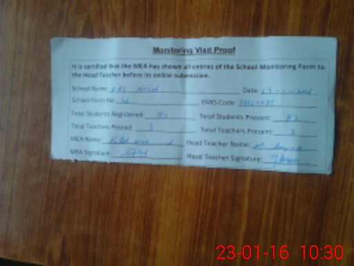 | Certified that this School was Inspected by the Undersigned MEA/DMO Today and the Information Stated Above is as Per Record. | |||||