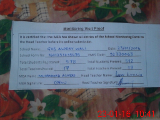 | EMIS Code: 32330063 | Name of School: GHS ALODAY WALI (AGRO TECHNICAL) | |||