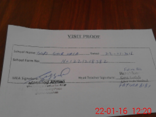 | Attendance Register | Head Teacher | MEA with School | Visit Proof |