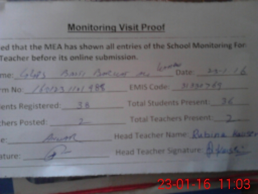| EMIS Code: 31330769 | Name of School: GGPS BASTI BARKAT ALI KAMBO | |||