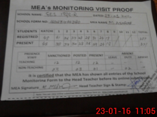 | Attendance Register | Head Teacher | MEA with School | Visit Proof |