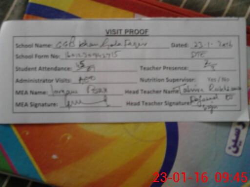 | Attendance Register | Head Teacher | MEA with School | Visit Proof |