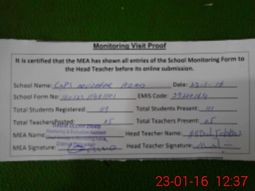 | EMIS Code: 39220164 | Name of School: GPS MOHALA MUZAFFAR ABAD | |||