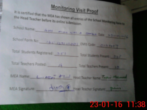 | Certified that this School was Inspected by the Undersigned MEA/DMO Today and the Information Stated Above is as Per Record. | |||||