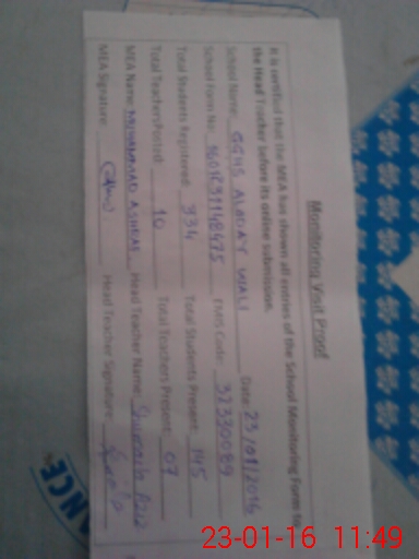 | Certified that this School was Inspected by the Undersigned MEA/DMO Today and the Information Stated Above is as Per Record. | |||||