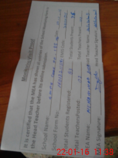 | Certified that this School was Inspected by the Undersigned MEA/DMO Today and the Information Stated Above is as Per Record. | |||||
