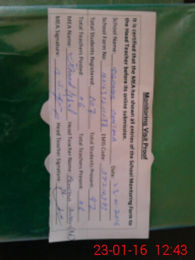 | Certified that this School was Inspected by the Undersigned MEA/DMO Today and the Information Stated Above is as Per Record. | |||||