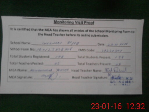 | Certified that this School was Inspected by the Undersigned MEA/DMO Today and the Information Stated Above is as Per Record. | |||||