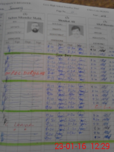 | CNIC | Full Name | Designation | R/C | Absence During Last Calender Month |