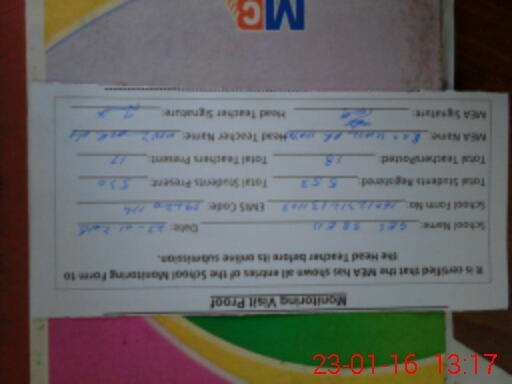 | Attendance Register | Head Teacher | MEA with School | Visit Proof |