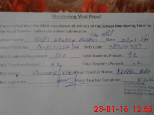 | Certified that this School was Inspected by the Undersigned MEA/DMO Today and the Information Stated Above is as Per Record. | |||||
