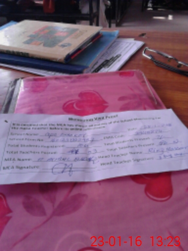 | Attendance Register | Head Teacher | MEA with School | Visit Proof |